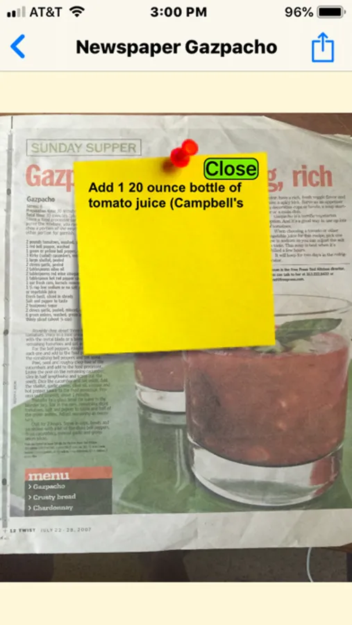 - Add sticky notes to your recipes for personal preferences