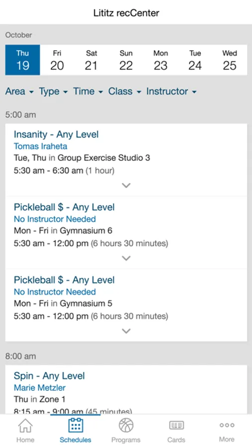 • Easily view schedules for each day and filter for the types of classes that you like.