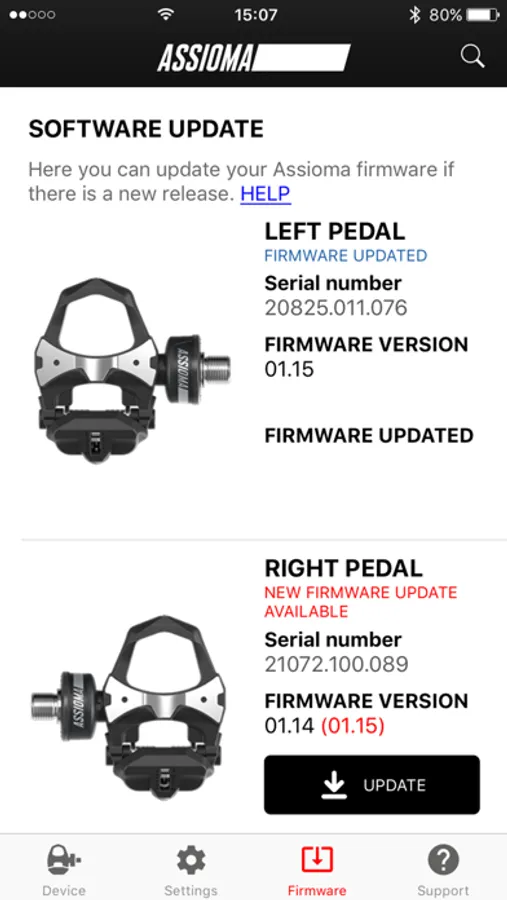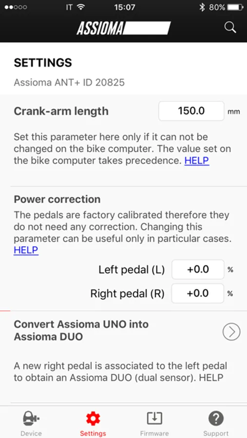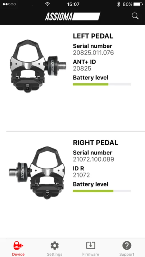 The Favero Assioma app is needed to activate the pedals and to access key functions like: