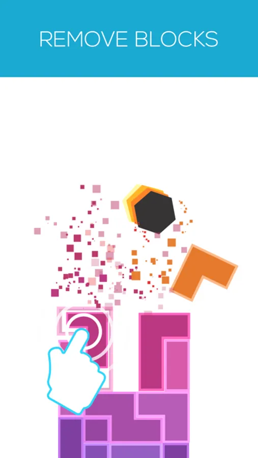 The game concept is simple: there is a tower of blocks of various shapes, upon which sits another hexagonal block. The aim of the game is to move the hexagon down the screen to earn points. To do this, you tap the different blocks, which will make them disappear. The hexagon can then fall into the empty space left behind.