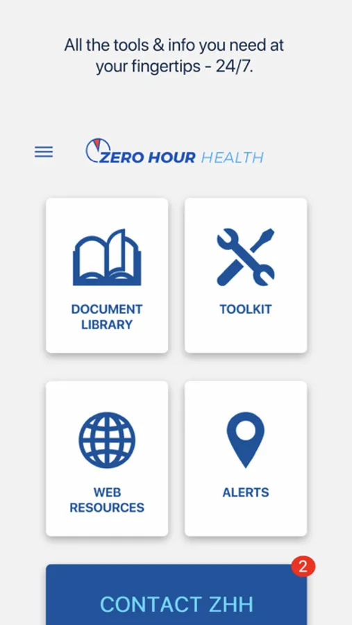 ZHH Crisis Response offers health related content and interactive tools to clients of Zero Hour Health for use in addressing critical employee and customer health issues. Resources include a library of documents, alerts for issues in your area and a toolkit for responding to potential health crises. Clients can also reach the ZHH response team quickly, right from the app.