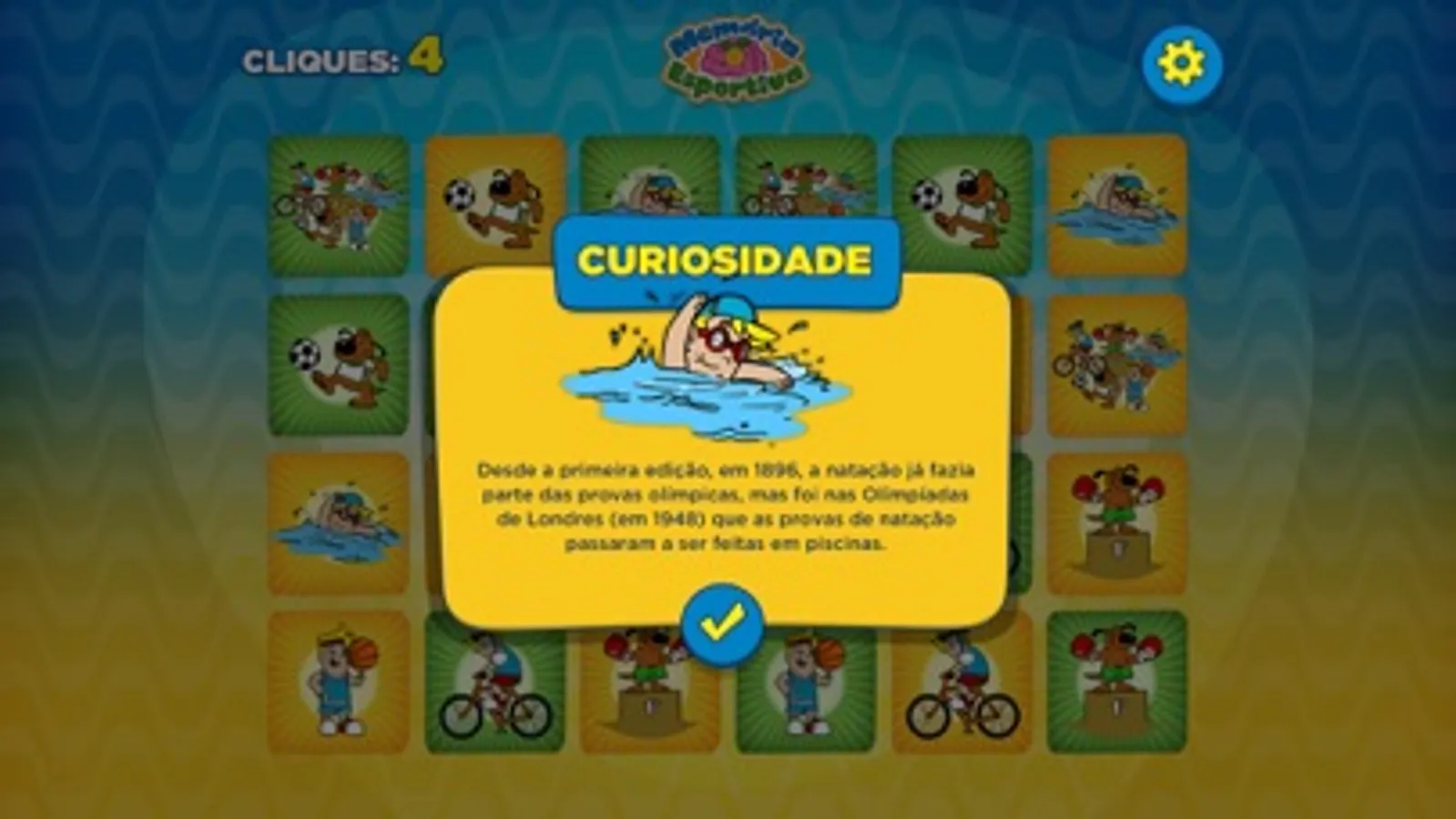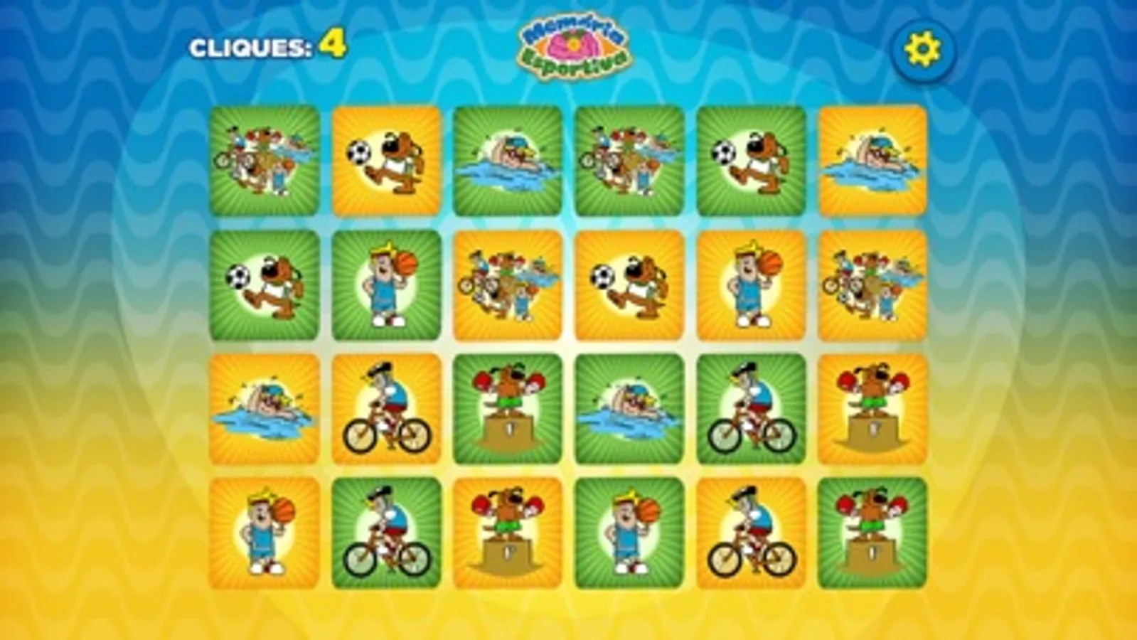 Jogo da memória digital, com ilustrações de personagens da Xalingo representando alguns esportes. O objetivo é encontrar os pares de cada ilustração. A cada dupla acertada, é apresentada uma curiosidade sobre o esporte em questão. A pontuação é contada de acordo com o número de cliques necessários para completar o jogo (quanto menos cliques, maior a pontuação). A cada recomeço de jogo, as cartas são embaralhadas de forma diferente, redistribuídas em outras posições, garantindo sempre um novo desafio. É um jogo que trabalha a capacidade de atenção, concentração e a memória visual da criança, além de oferecer informações sobre os esportes abordados.