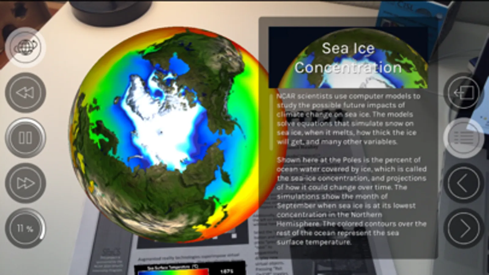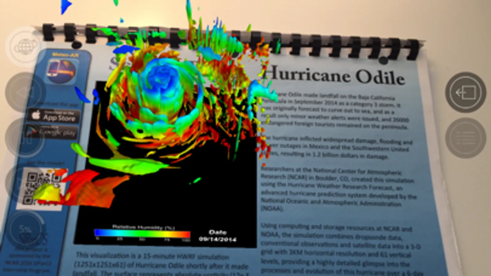 The Meteo AR app provides an Augmented Reality interface for exploring 3D earth science data sets and learning more about the complex environment we live in. Just point your iPhone or iPad’s camera to one of our “science sheets” (link below or access the pdf from within the app) and see science and supercomputer data come alive before your very eyes!