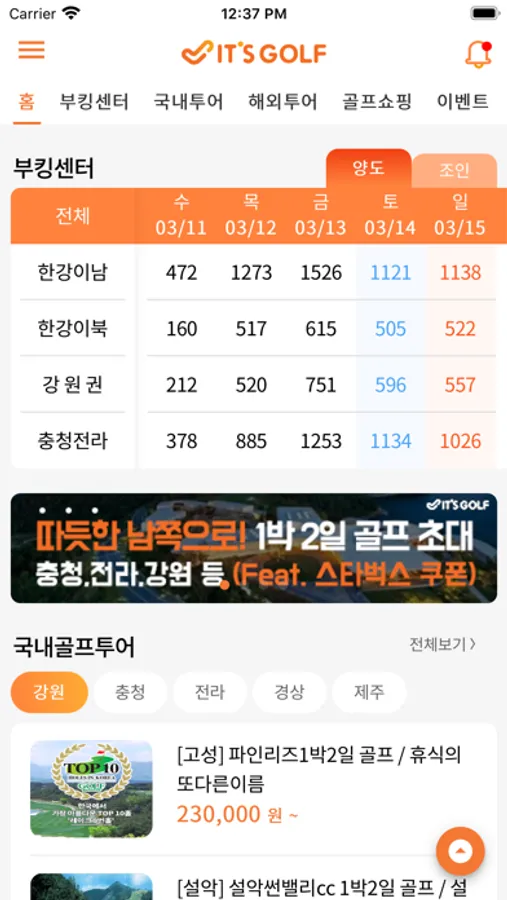 세상에서 가장편한 골프부킹앱 이츠골프입니다.