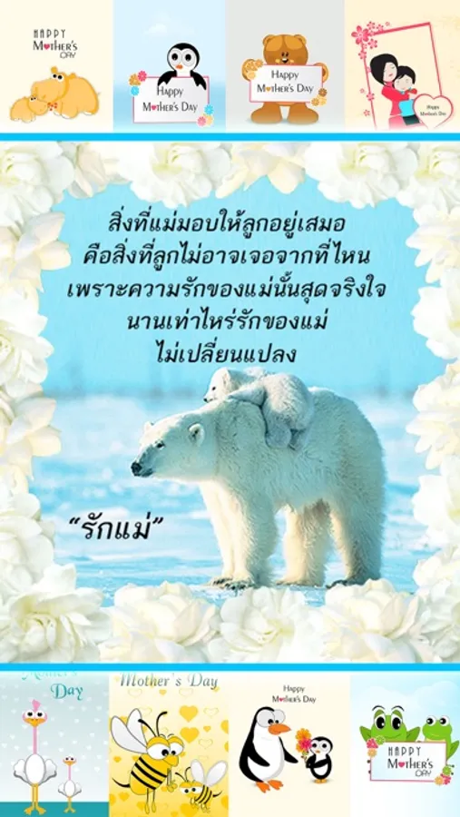 สำหรับแชร์และส่งให้คุณแม่ แชร์เป็นภาพผ่านทางแอปโซเชียล เช่น Facebook , ไลน์ , Twitter , Google+ , Instagram และอื่นๆ