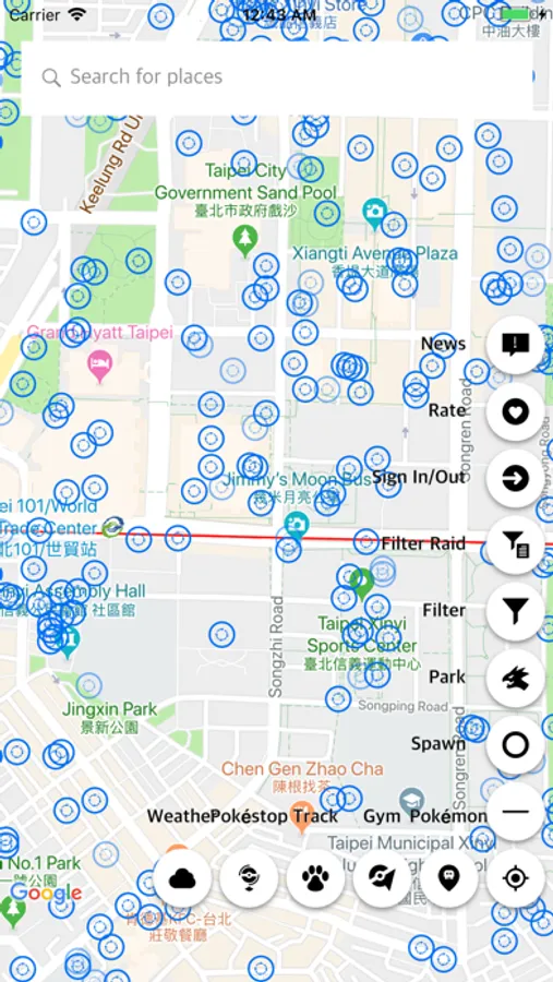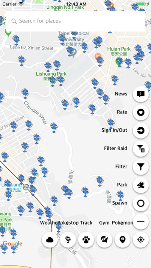 2. Search Pokémon, Gym, Raids, Pokestop around map area in real time and allow users to filter.