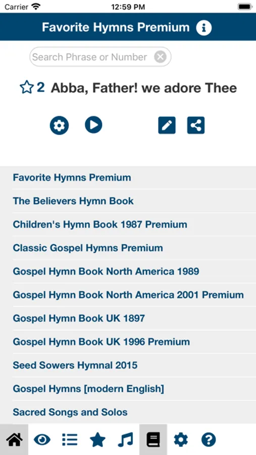 - Favorite Hymns Premium (Favorites from the hymnals below along with others, including Christmas carols. Sheet music for most.)