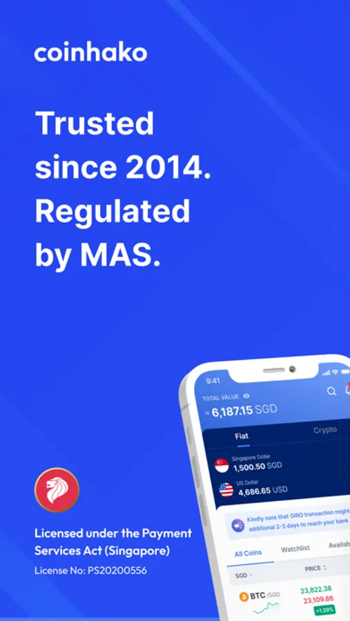 Coinhako has a Major Payment Institution (MPI) license from the Monetary Authority of Singapore (MAS) to offer Digital Payment Token (DPT) Services under the Payment Services Act (PSA).