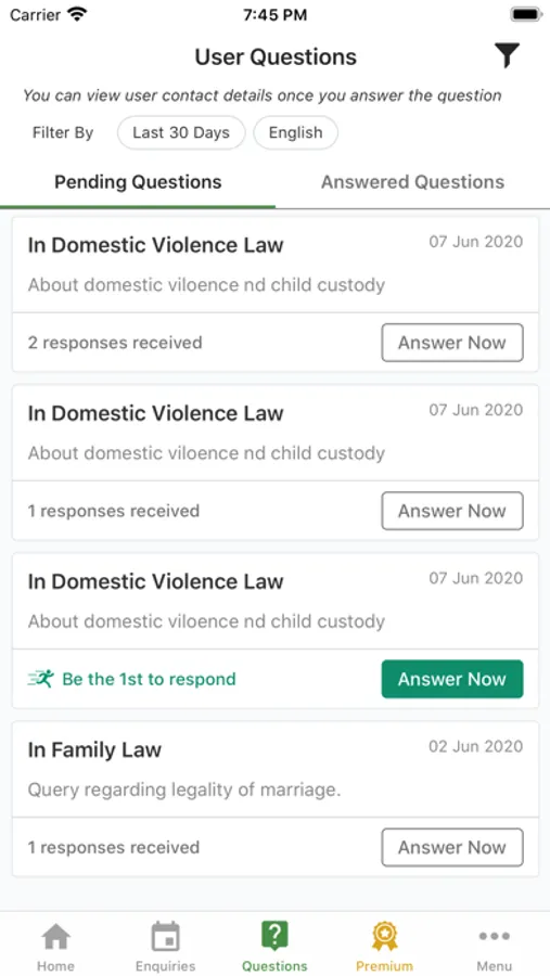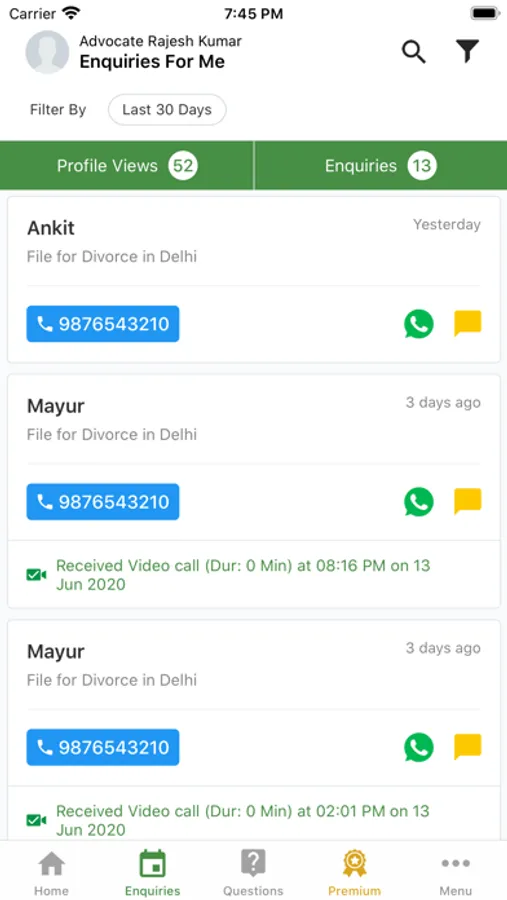 Manage your lawyer profile with Partner App. Get contact details for legal advice seekers, answer queries through our latest voice enabled technology and manage your appointments.