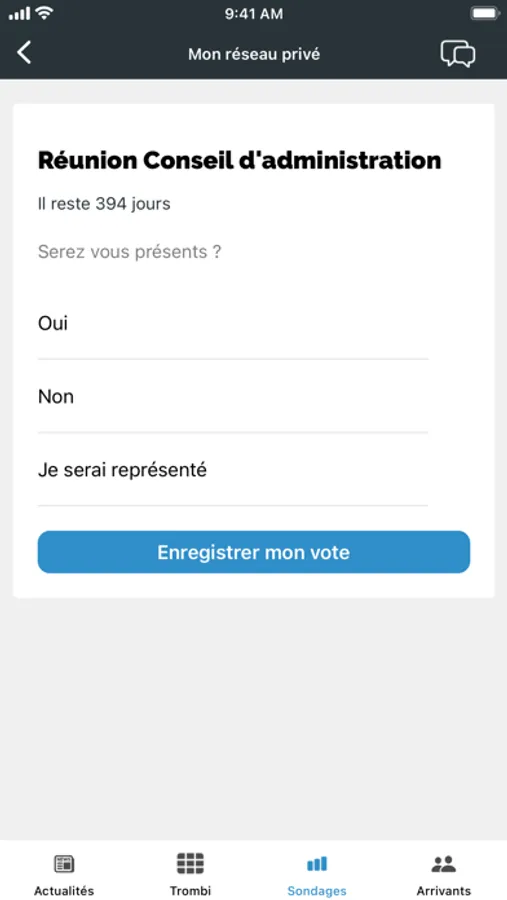 - et bien sûr, vos outils de communication, SMS, téléphone, e-mails, accessibles à partir de l’application.