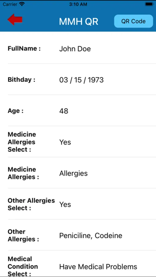 My Medical History-QR™ is the easiest way to add and carry your important medical history on a mobile phone. In addition, you can add, edit, and view any information that you enter. All information is password protected and only saved in your phone, never in a database or the cloud. You and only you have control of what information is added and who can see it. Enter as much or as little information as you wish. My Medical History-QR™ can be lifesaving and the most important app in your phone.