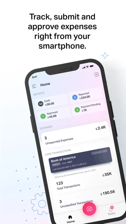 For large enterprises, the mobile app supports automatic policy checks to help employees spend in compliance with company policies, and flag violations in real time.