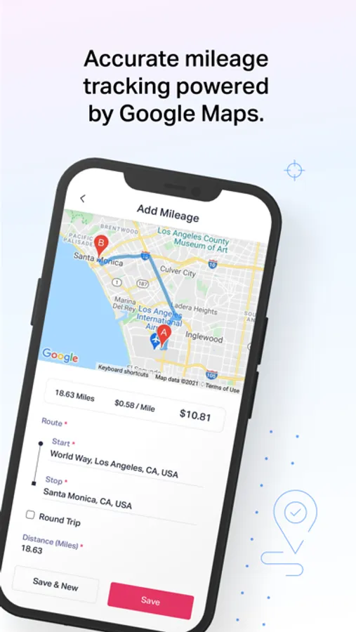 * Track mileage using Google Places API with support for round trips