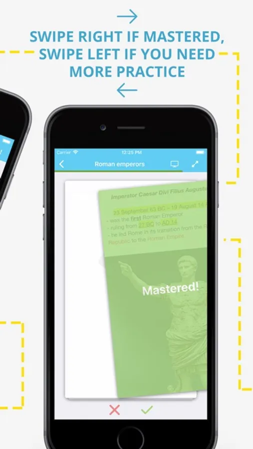 Just swipe right if you’ve mastered current flashcard, or swipe left if you need more practice. Tap on flashcard to flip to the answer.