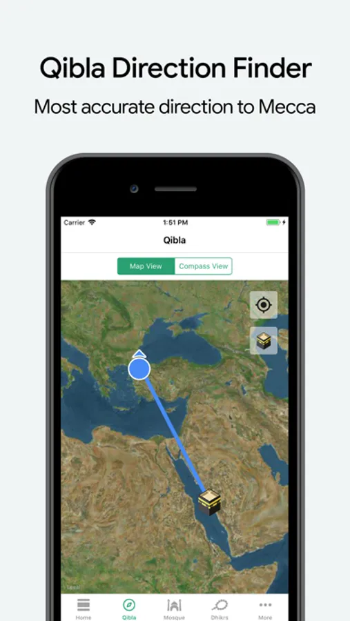 For proper Qibla Finder usage, you need to hold your phone on a flat surface and keep it away from electromagnetic fields and metal objects. If it is necessary, you can manually rearrange your location through pressing the marker.