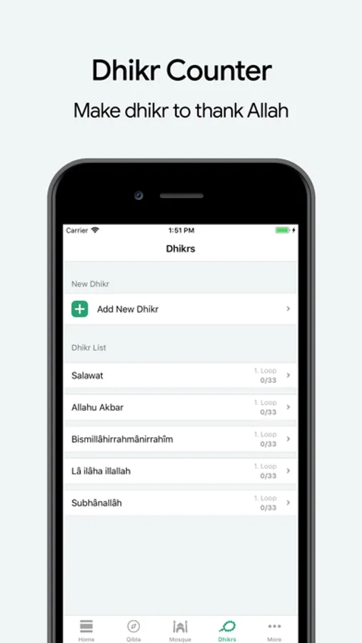 Dhikr Counter: You can easily make dhikrs, record your dhikr counts and dhikr loops.