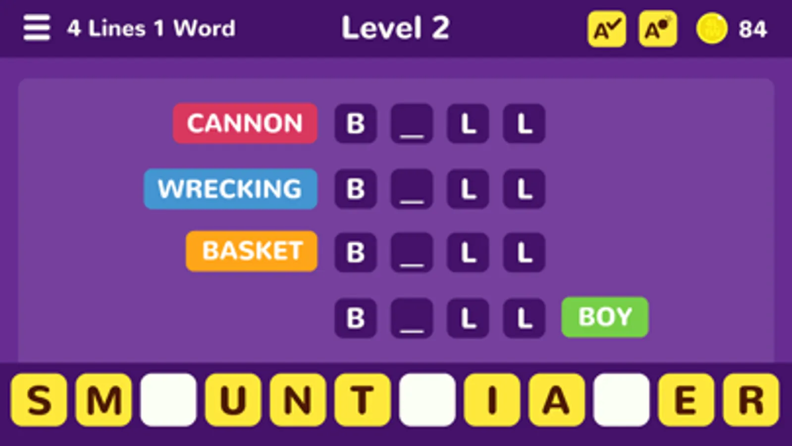 Which word are we looking for? Look at the four lines; find out what word is missing. Win!
