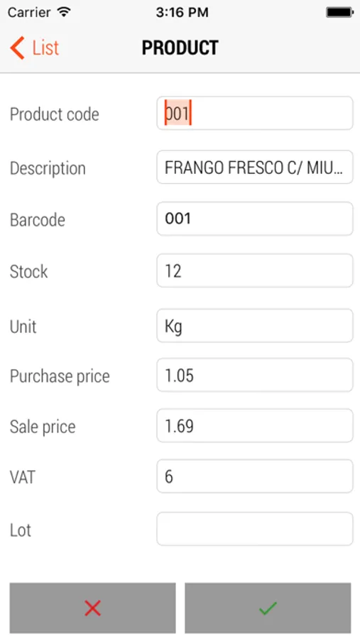 Records by reading barcodes through the device camera or scanner, when applicable, with association of the respective amount.