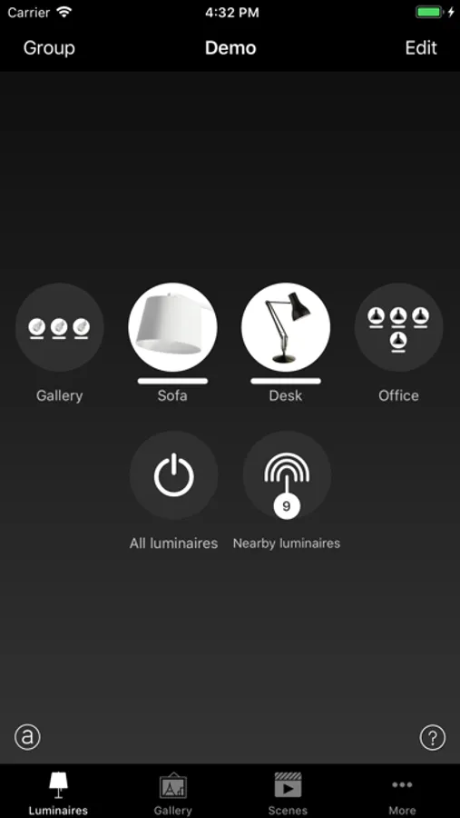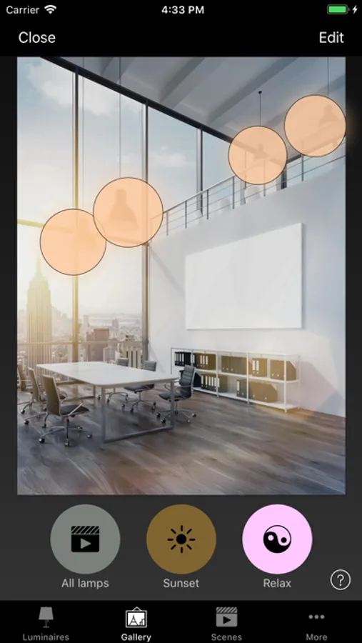 The Gallery in the Mylights remote app is the most natural way of controlling your lighting. Take a photo of your room(s) and hold the lighting control device over the lighting fixtures in the picture. Now you can control your lighting fixtures directly, based on their position in the photo.