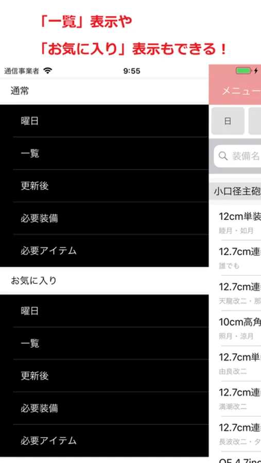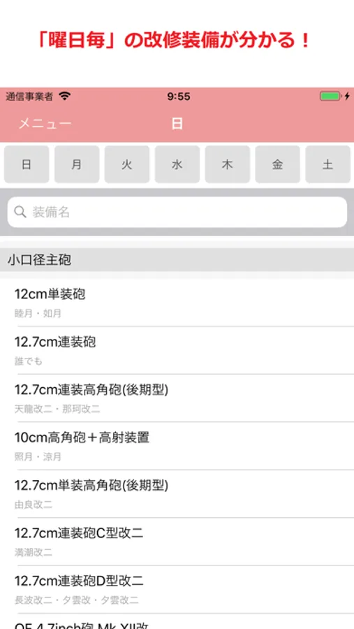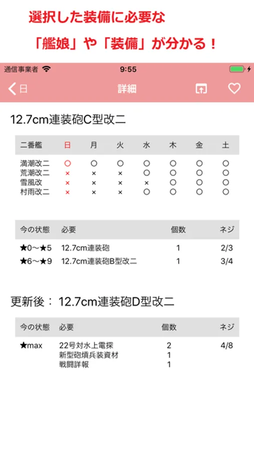 「何曜日に、どの装備が、誰で改修できるか」が簡単に確認できます