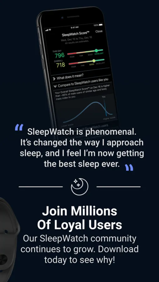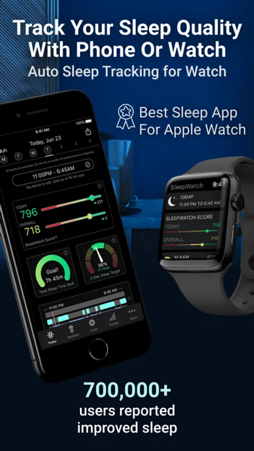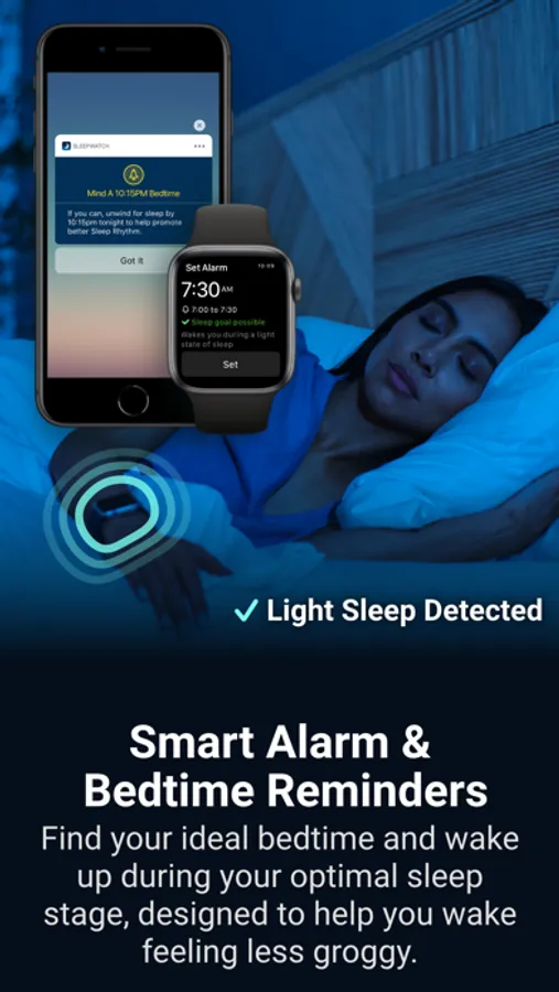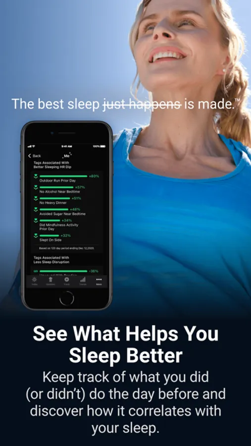 Activate the iPhone app or wear your Apple Watch when going to sleep. Upon waking, you’ll get a personalized sleep report, plus daily customized tips and recommendations on how to improve with our sleep coaching software.