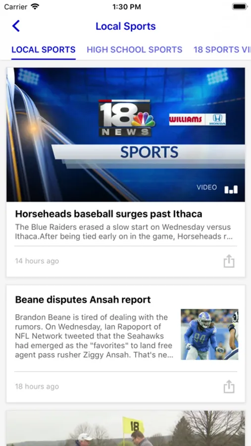 The 18 Sports app offers a superior local sports experience at home or on-the-go. You can count on 18 Sports to provide the latest local sports highlights, game recaps and scores.