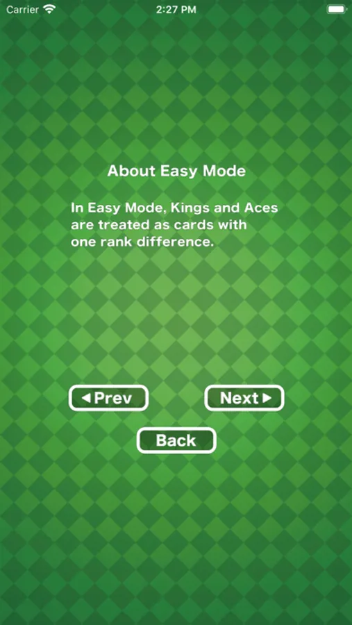 In Easy Mode, Kings and Aces are treated as cards with one rank difference.
