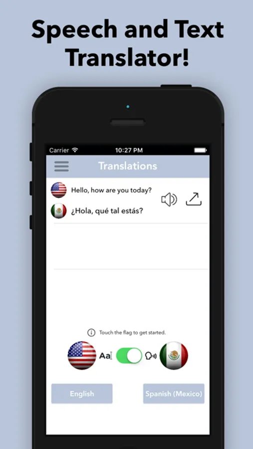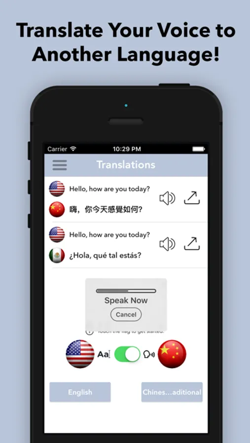 Speech & Text Translator allows you to translate your voice into another language that you can actually hear!