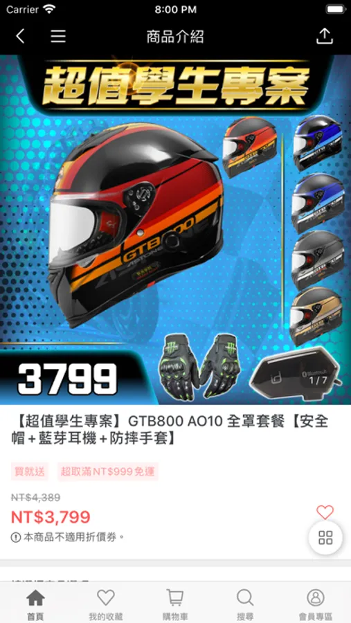 商品包含:安全帽、鏡片、防摔衣、車靴、護膝、手套、雨衣、雨傘、雨鞋套、防水背包、帽袋、手機架、行車紀錄器、藍芽耳機、袖套、騎士清潔用品、皮革蠟及各式騎士相關用品。