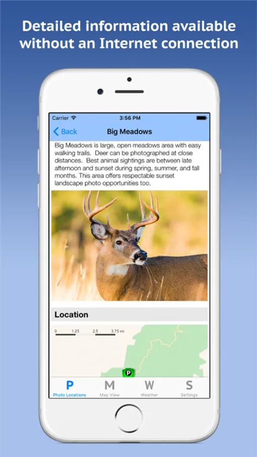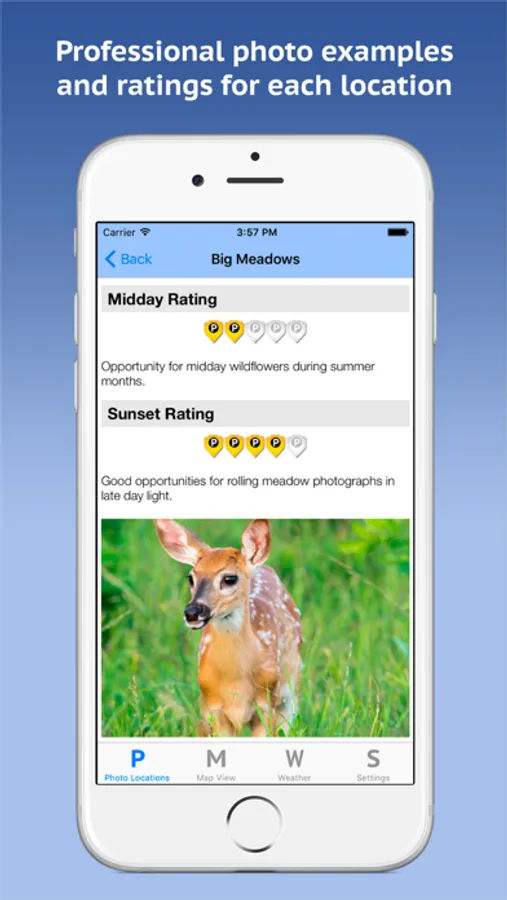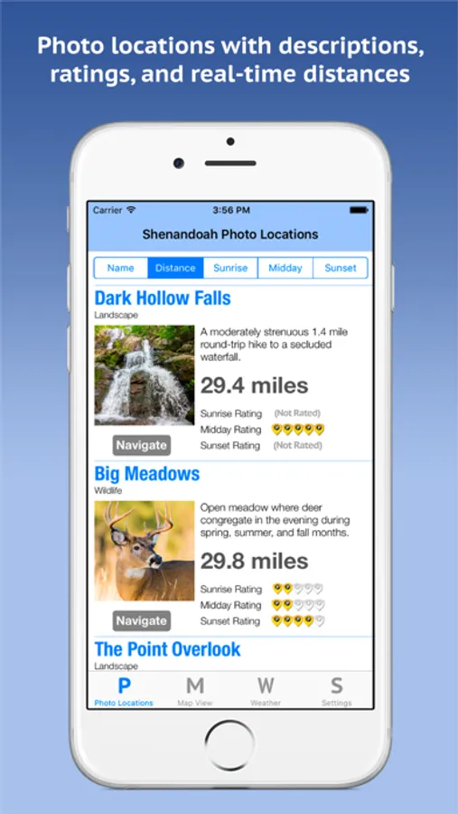 -- Each photo location has sunrise, midday, and sunset ranking information to help you find the best location for the time of day.