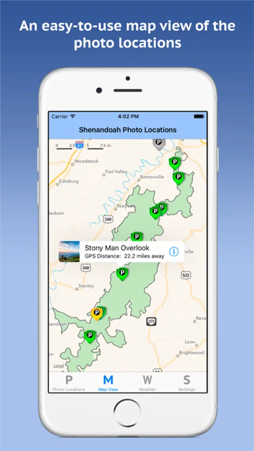 Pixavego® is an interactive tool to help guide you to the best photographic locations in Shenandoah National Park. This app provides detailed geographic location information with photographic suggestions and beautiful example photographs that are produced and curated by a professional landscape and wildlife photographer. This interactive photography guide will help you select the best locations in the park for sunrise, midday, and sunset pictures.