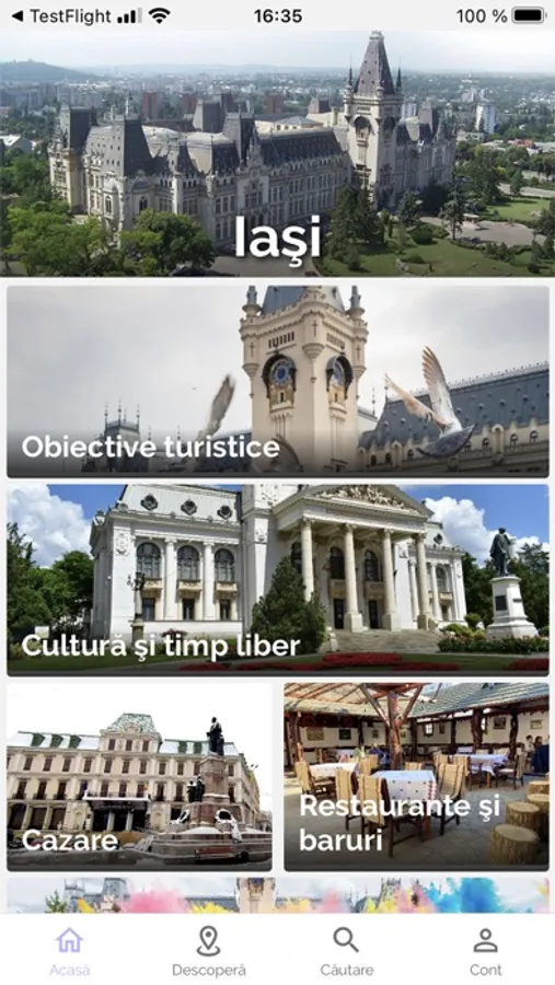 Versiunea actuala de Iasi Official App contine urmatoarele teme: