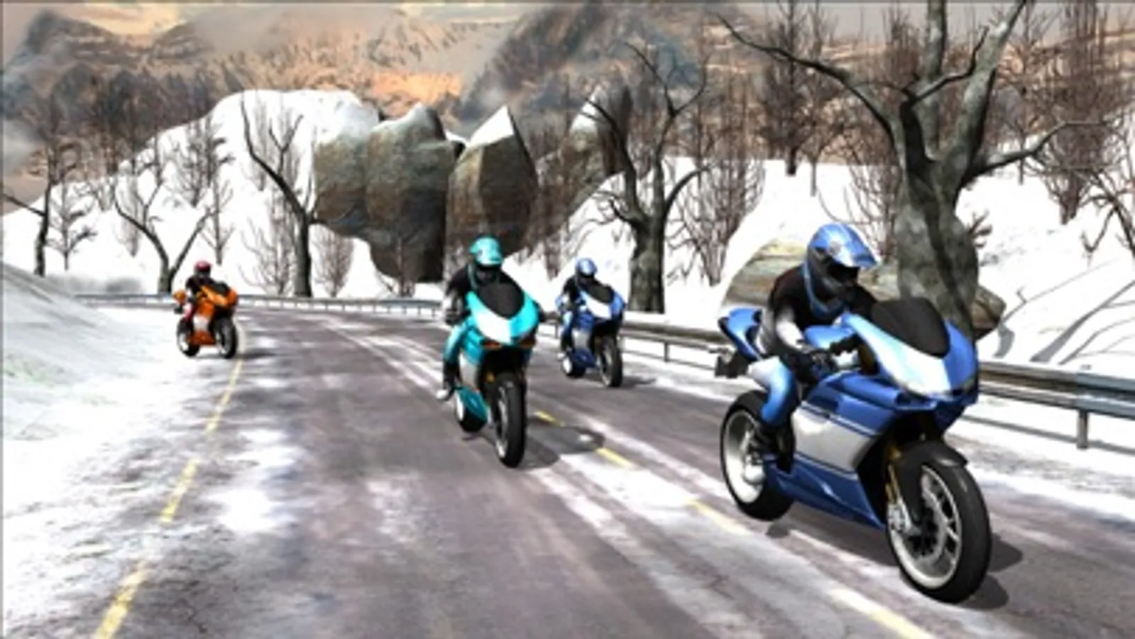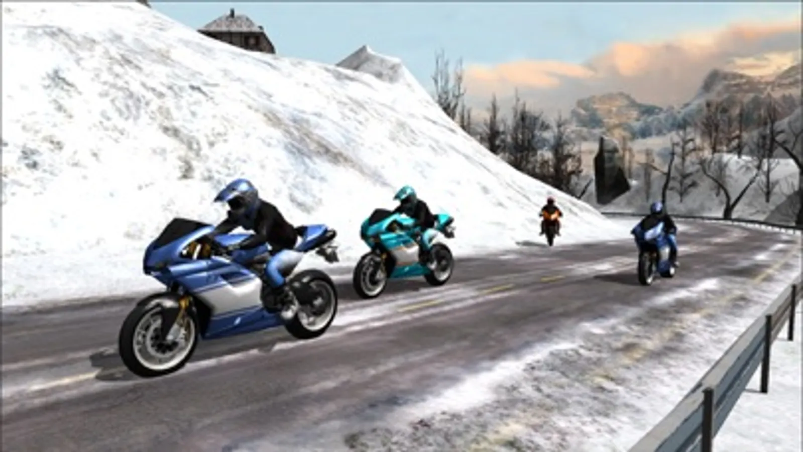 - Amazing realistic graphics of super sports motor bike , nice racing rally road and fantastic nice snowy mountain