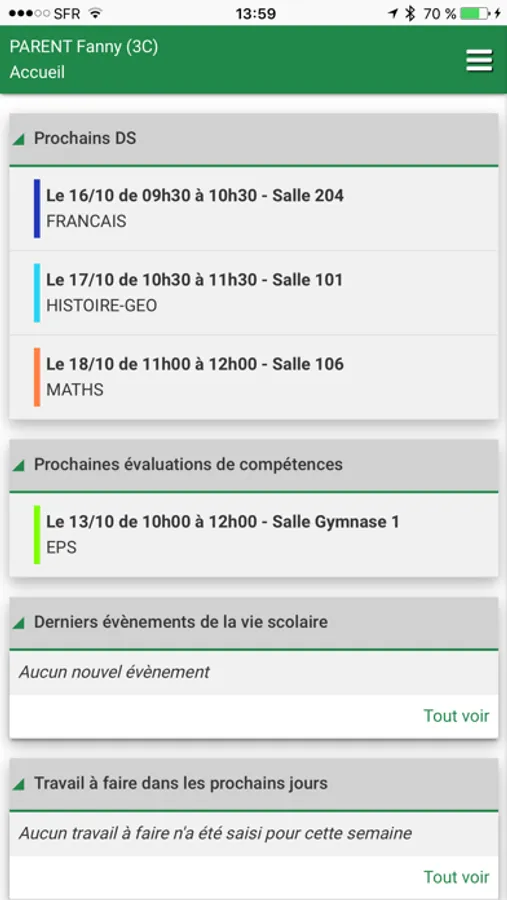 PRONOTE mobile is also contextual messaging that links all the actors of the institution: every event is announced by a notification (message, information and surveys, digital locker, etc.) for everyone’s benefit.