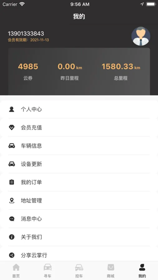 -实时定位:实时查看车辆位置、查看历史轨迹且可分享。