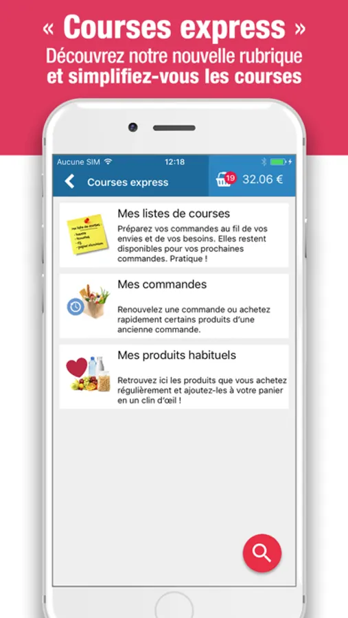 • Courses express : retrouvez en un clin d’œil les produits que vous achetez régulièrement,
