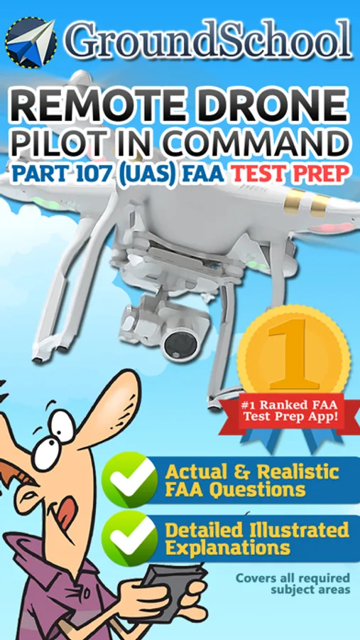 This test prep app is 100% what you need to help you pass both your initial small unmanned aerial system (sUAS/Drone) RPIC knowledge test which is now required by the new CFR 14 Part 107 FAA regulations. What's more, with its free lifetime updates, it'll also prepare you for the recurrency/recertification tests that you'll need to take down the line at no extra charge.