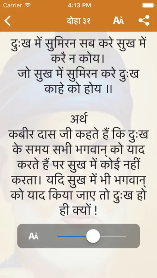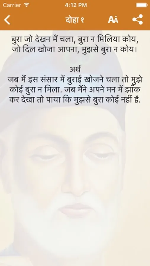 This App is a compilation of 200+ 'Kabir ke Done' two line couplets with that meaning.