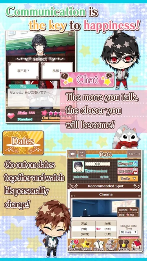 ・Chat, Work and go on Dates with your boyfriend to get closer, unlock new content and even earn in-game money!
