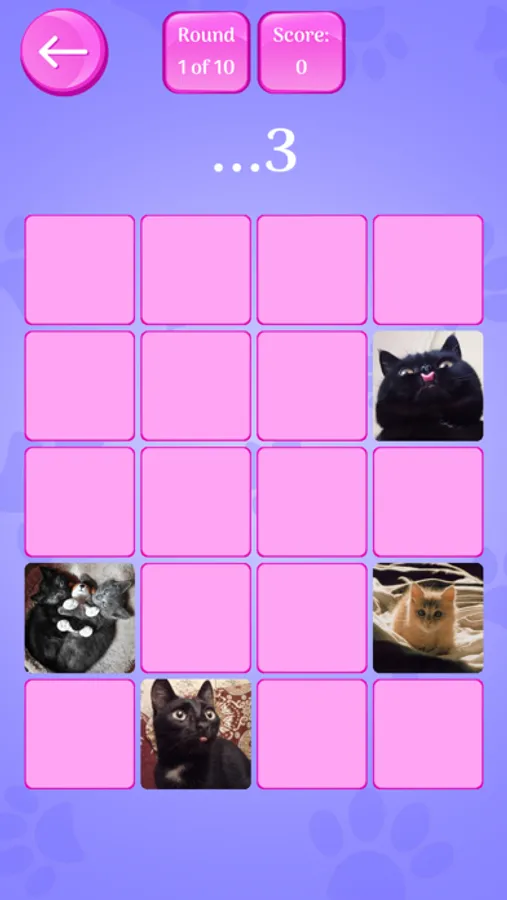 Every time you start a new game, a random selection of the cards ensures all different games, so you can replay endlessly. Turn 2 cards over by tapping them. If cat cards match, they will stay there, if do not match, they will flip back over.