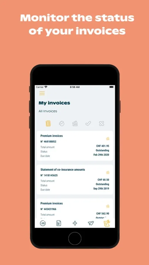• Find all your documents in one place (insurance certificates, statement of benefits, letters, tax certificates, etc.)