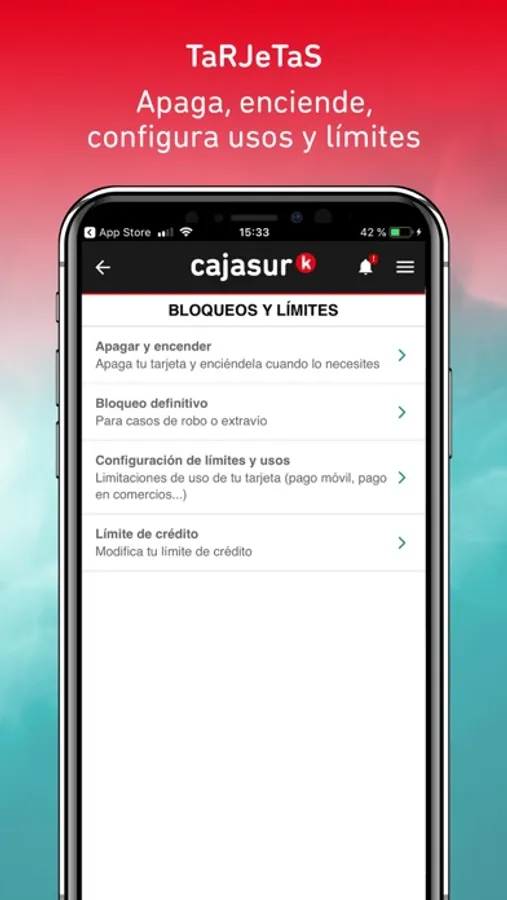 Cuando quieras puedes apagar o volver a encender una tarjeta, también bloquearla definitivamente si la has perdido o te la han robado, o establecer límites para su uso en comercios, en internet, en cajeros…