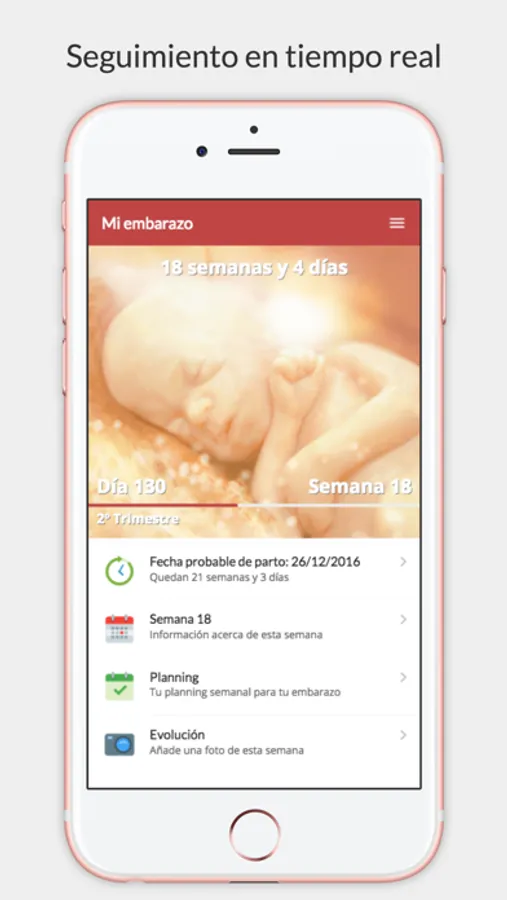 La App sabrá en qué día y semana de la gestación se encuentra la paciente y mostrará información, ilustraciones, ecografías 2D y 3D del momento actual.