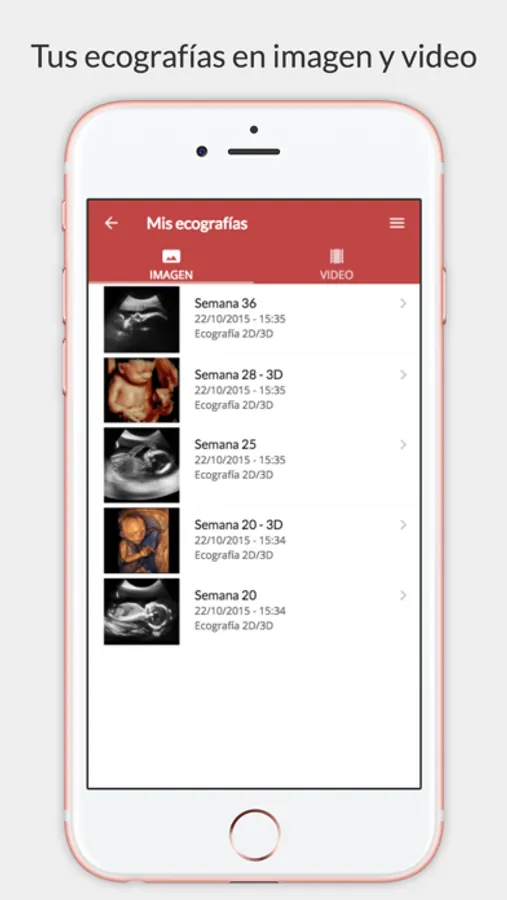 Todas las ecografías de imagen y vídeo perteneciente a cada paciente, estarán siempre disponibles en su bolsillo a través de la App.