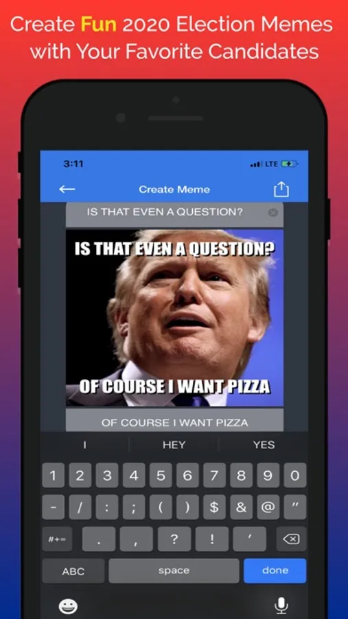 2020 election got you thinking? Say it with a meme with the Election Meme app, now updated for 2020!