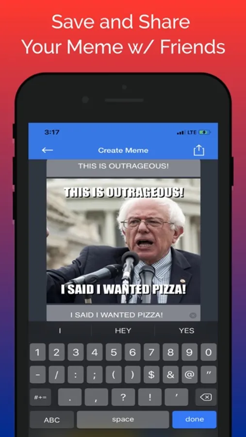 Set the text to whatever you want, then easily save and share your new meme with friends and family.