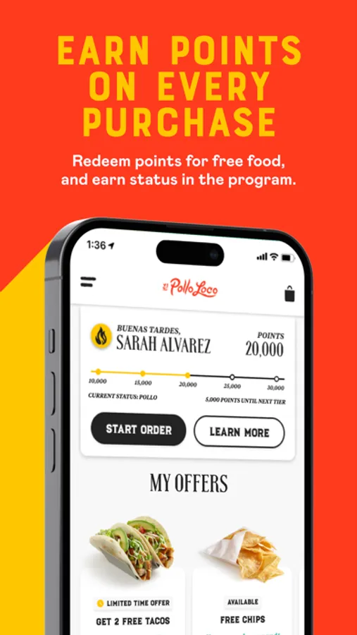 I hate free food (said no one, ever). Join the Familia to enjoy personalized offers, birthday rewards, and exclusive access to content, experiences, and new menu items at El Pollo Loco. With the app, you'll earn points with every qualified food and beverage purchase to redeem for free food - all while climbing up our Loco Tiers. Start as a Pollito and work your way up to a Pollo Loco!
