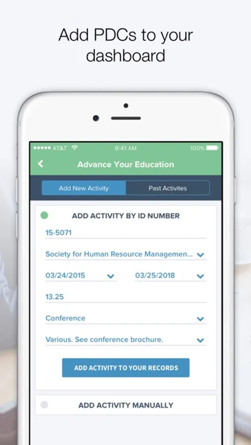 • Easily add your professional development credits (PDCs) under the Advance Your Education section.