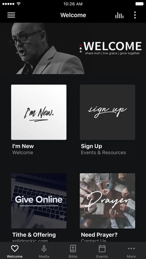 The Solid Rock Church App was created with the Subsplash App Platform.