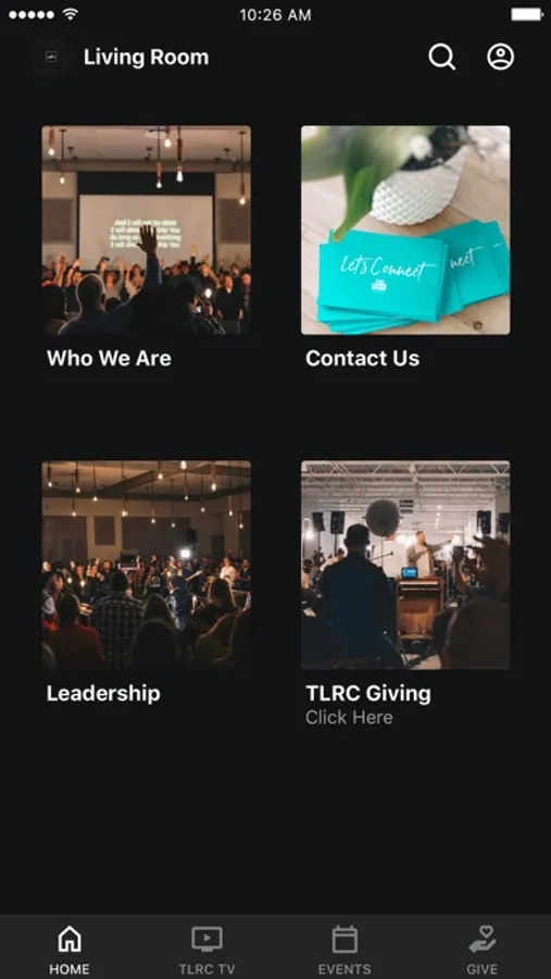 The Living Room Congregation App was created with the Subsplash App Platform.